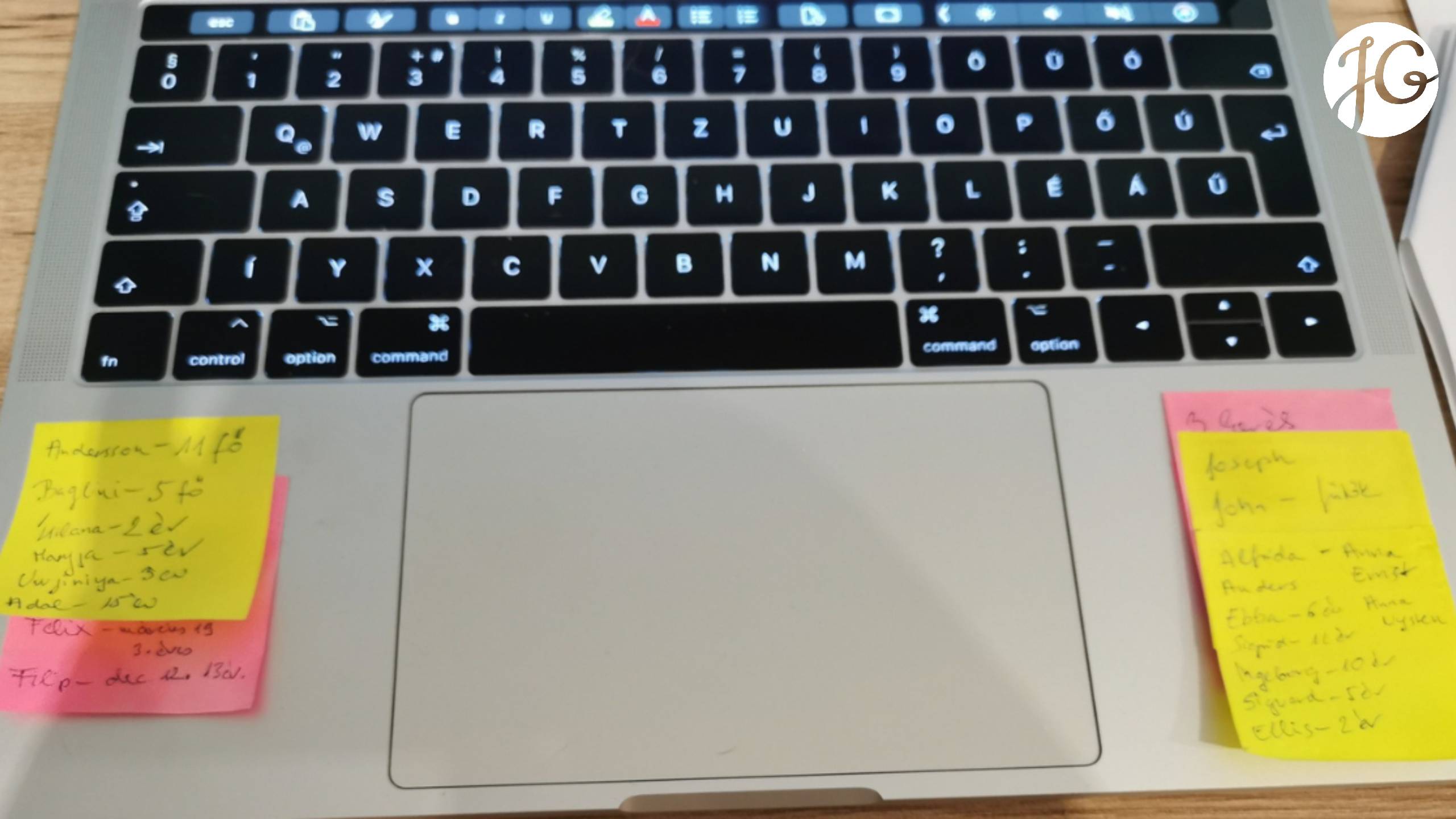 A Titanic elfeledett hangjai című regényemben igen népes családokkal dolgoztam. A történetem három családja ugyanis sok kisgyerekkel szállt fel a hajóra. Ezért, hogy ne keverjem össze az írás alatt a neveket és a családokat kis Post it-eket ragasztottam a laptopomra, melyen a családtagok nevei és életkora szerepelt.